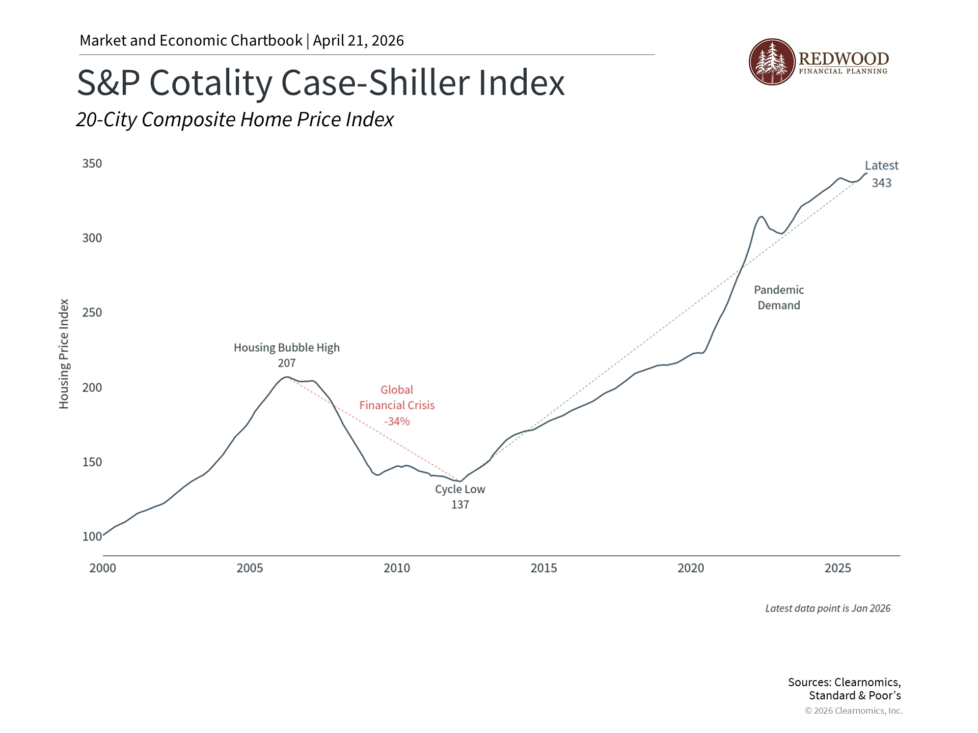 For many households, a home represents not only where they live and raise their family, but also their largest financial asset, monthly expense, and source of debt. From a broader economic perspective, the housing market is deeply intertwined with consumer confidence and economic growth. So, while investor attention has been on geopolitics and market volatility this year, the fact that home prices remain near all-time highs continues to play an important role in financial planning.